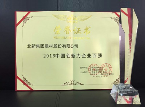 北新建材以技术创新作为重要战略引擎,生产线成套技术装备达到世界先进水平,并且拥有100%自主知识产权。截至2016年底,北新建材累计申请专利3061件,获得授权2430件,PCT国际专利24件,专利申请量和保有量一直保持行业遥遥领先。管理创新方面,北新建材不断推进“四个充分”、“双线择优”、加强精细化管理大幅降低运营成本,充分提高公司竞争力。2016年,经国务院批准,北新建材荣获中国工业领域最高奖项——“中国工业大奖”,成为我国建筑材料行业首次获此殊荣的企业;诺贝尔奖获得者蒙代尔领衔的世界品牌实验室授予华为、北新建材“龙牌”等35家中国行业龙头企业“中国品牌年度大奖NO.1”;北新建材“双线择优”管理模式获得2016全国国有企业管理创新成果一等奖。