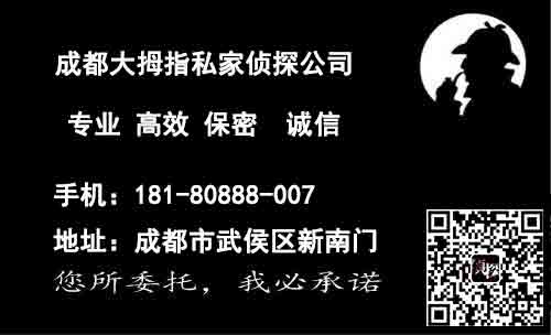 成都大拇指私家侦探公司在调查工作中我们的认真、负责、实事求是、合理合法、规范的运作流程,以及滴水不漏的保密工作,受到了客户的高度信任和好评,在同行中有较高的声誉。我们相信,我们的调查员的个人素质、文化修养和办事的效率、经验都不会逊色于其他类似机构。在长期的调查任务中,丰富了我们的调查经验,赋予了我们敏锐的洞察力,使我们不管碰到任何突发事件和高难度工作都处变不惊,应付自如。另外我们有各专业技术领域和办案策略的专家来配合前线调查员的工作,保证了调查工作的客观、完整、及时。现代化高科技的专业设备使我们如虎添翼。我们随时随地为您解决各种问题。我们为您调查的资料可靠可信,全部为真实现场,即时获取的资料。各机构的数据资料也是真实的存档资料,我们所提供的图片等证据信息,都有较高的实用价值,为您的决策提供可贵的参考!