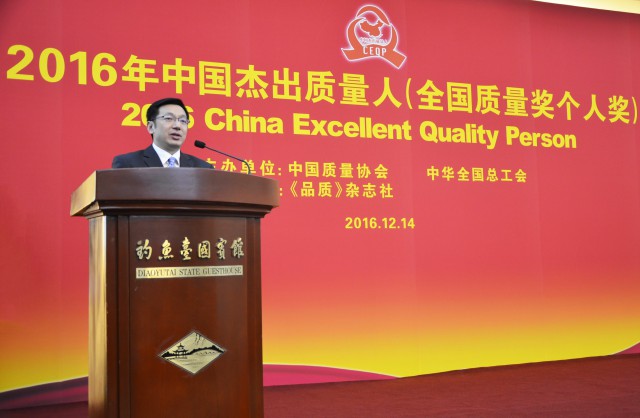 王兵董事长在获奖发言时说,供给侧改革,质量是关键。不仅仅是淘汰落后产能和数量调整,更要进行结构调整和更高质量的产品供给。质量是一种文化和价值观,需要全社会的关心和支持。不能只有O2O,没有产品质量,也很难说是强国。中国制造不能只是在中低端发展规模,应该大力发展高端产品、占领高端市场、培育高端品牌,让中国制造成为高品质的代名词。中国自信需要以工业自信为基础,工业自信需要我们做好质量和创新,对标和超越世界一流。